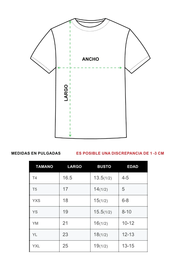 • Tallas: Gama completa de tallas para niños y jóvenes, se adapta a niños de diferentes rangos de edad.